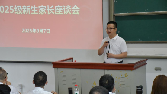 为进一步促进新生及家长对学院的了解、建立良好的家校沟通关系,9月7日下午,机电学院召开2025级本科新生家长会。院党委副书记林兴冬代表学院热烈欢迎各位新生家长的到来,并从学生日常管理、思想政治引领、学业指导、心理健康等方面,全面介绍了学院学生工作体系。院长赵树恩系统介绍了学院的发展历程、学科特色、专业建设、师资力量、人才培养体系及未来前景。