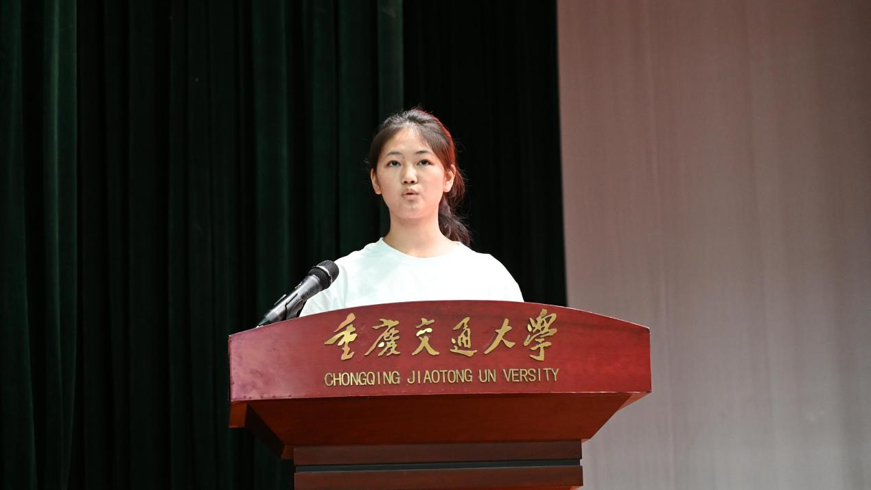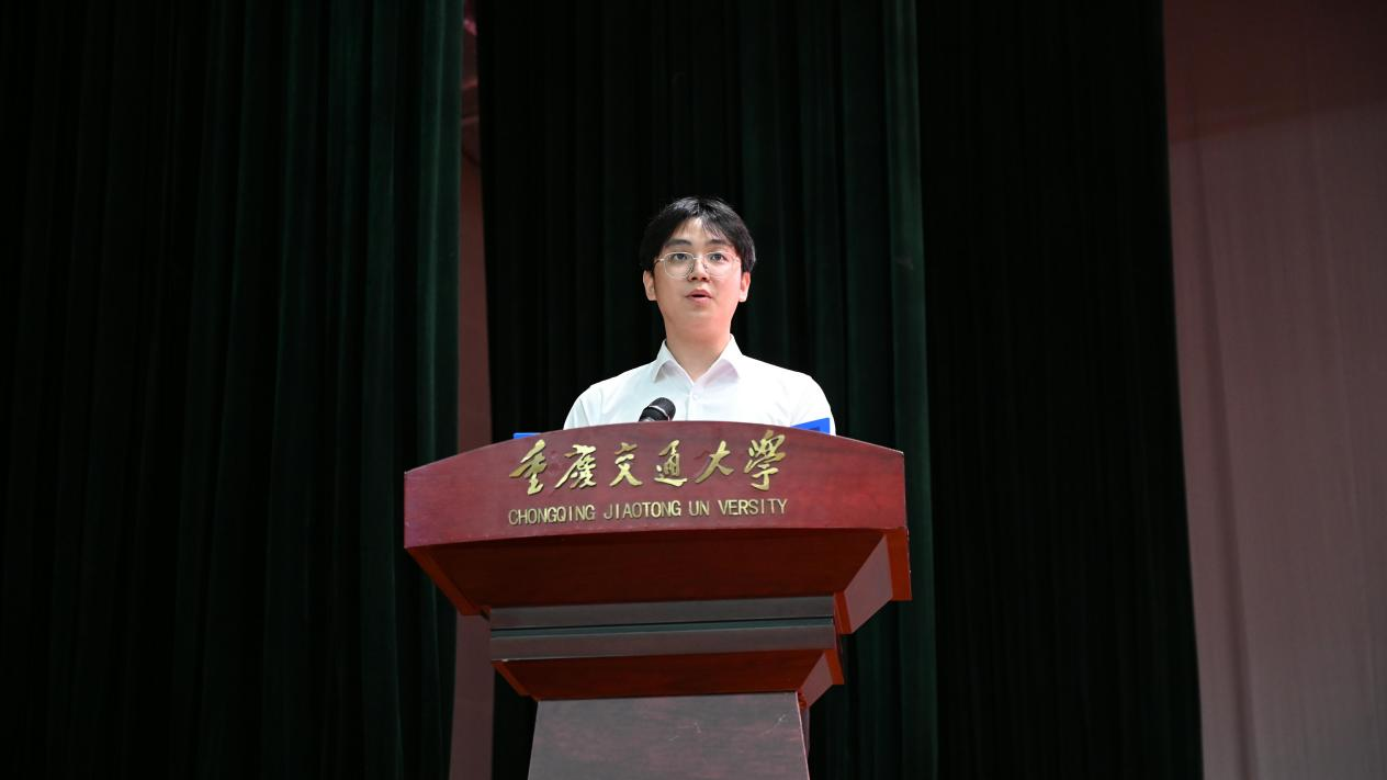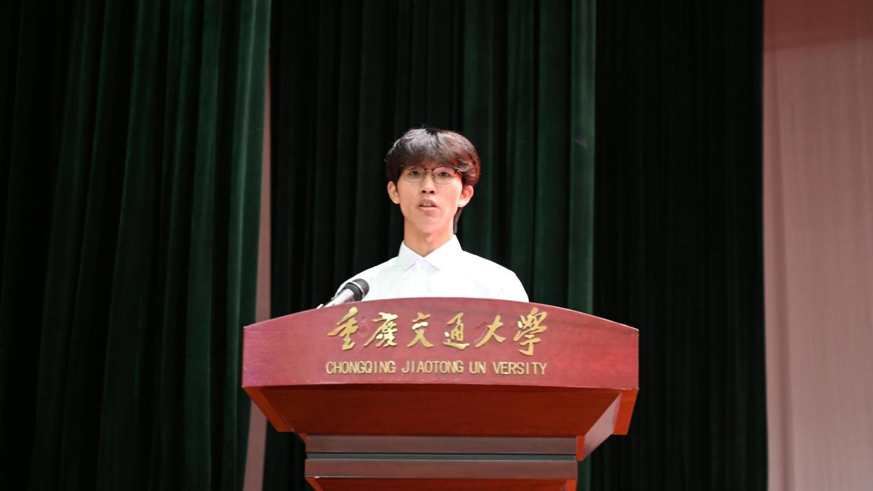 高年级学生代表、学院学生会主席、城轨2401班徐晶若同学以“不负热爱,不负机电”为主题,分享了她在学院“硬核”平台与“暖心”氛围中的成长体会。她提到学院近五年在“挑战杯”、“机械创新设计大赛”中累计获得国家级奖项66项、省部级188项的辉煌战绩,鼓励新生“别怕试错,主动探索,保持热爱”,在实验室、学生活动和各类竞赛中书写属于自己的精彩。