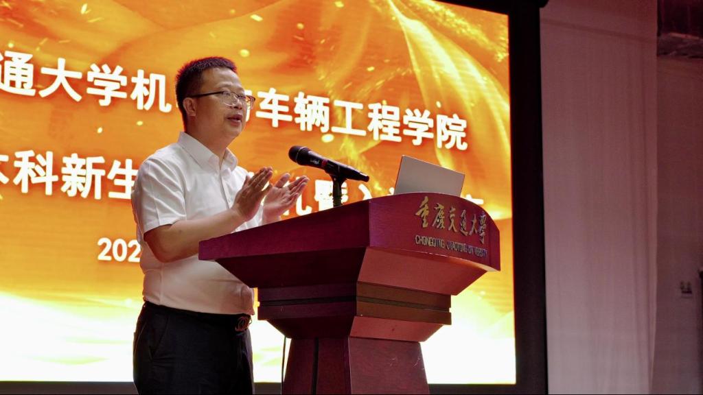 典礼上,学院院长赵树恩教授为全体新生讲授了“院长第一课”。他系统介绍了学院的发展历程、学科特色、专业建设、师资力量、人才培养体系及未来前景,并围绕“培养什么人、如何培养人、培成什么人”,深入阐述了学院的办学理念和育人方针。赵院长指出,学院紧密对接智能制造、新能源汽车等国家战略与行业发展趋势,以“培养基础扎实、实践能力强、具有创新精神的高素质工程技术人才”为核心目标,依托多个省级实验教学示范中心和校企联合实训基地,近年来在学科竞赛、科研创新、就业质量等方面均取得了显著成效。他勉励新生珍惜大学时光,树立远大理想,夯实专业基础,在机电学院提供的优质平台上茁壮成长。