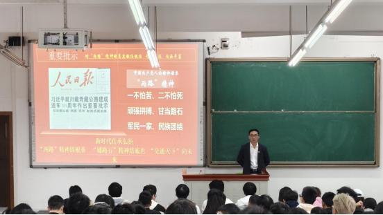 培训中,刘建新深入阐释了“两路”精神与“红岩精神”的时代内涵,强调要挖掘红色基因,筑牢“为党育人、为国育才”的思想根基。他特别肯定了学院学生在传承红色文化、推进学风建设中的创新实践。其中,学生自主改编的歌曲《两路情》已成为校园“金曲”,为两路建成通车70周年和习近平总书记“两路”精神题词10周年献礼;另一首学风建设主题改编歌曲《要出息》,以直面学业困境的“劝学指南”形式,成为“五少”健康教育的生动艺术表达。此外,学院学生还编撰出版了《机械中的党史》《烽火淬炼山城魂》《地名里的烽火硝烟》《红色印记·山城丰碑》等一系列红色文化学习资料,作为献礼纪念抗战八十周年的重要成果,展现了青年学子在党史学习与精神传承中的主动性与创造力。