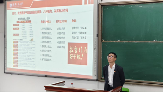 刘建新围绕班集体的认知、功能、建设意义及具体任务等方面展开系统讲解。他指出,班集体不仅是学生自我教育、管理和服务的重要平台,更是落实“三全育人”“五育并举”的基础单元。加强班集体建设,是培养担当民族复兴大任时代新人的必然要求,也是推动思想政治教育工作“重心下移”的有效途径。