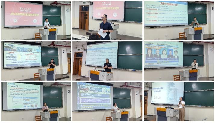 为强增本校考研学生报考信心,吸引本校优质生源,9月22日晚上19:00,800cc全讯白菜网在南岸校区第三教学楼30301教室举行了2026年研究生招生宣讲暨考研经验分享会。院党委书记刘建新、院长赵树恩教授、副院长陈仁祥教授,学院科研团队负责人隗寒冰教授、梁栋教授、崔晓璐教授、文孝霞教授、余腾伟副教授、王钰洁博士,研究生代表、学院学科与研究生管理办公室老师和近100名本科拟考研同学参加了本次宣讲会。