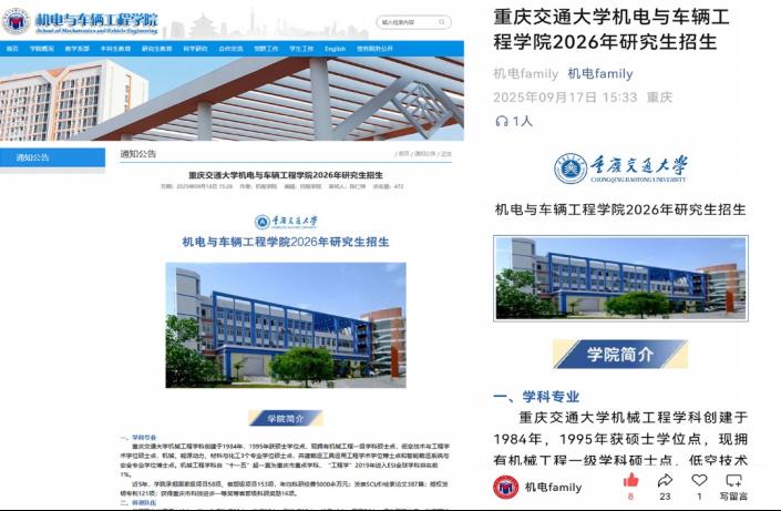 学院主动搭建“线上线下”“校内校外”立体宣传网络,多措并举,开展招生宣传。统一制作学科专业招生宣传PPT,组织专业授课教师深入车辆工程、机械制造及其自动化、机械电子工程、电气工程及其自动化、材料成型及控制等专业毕业班级,在课堂开展招生宣传,为吸引优质本校生源奠定了良好基础。利用学院网站、微信公众号、QQ群等新媒体宣传平台,拓展招生宣传覆盖面,深入做好研究生招生宣传工作。