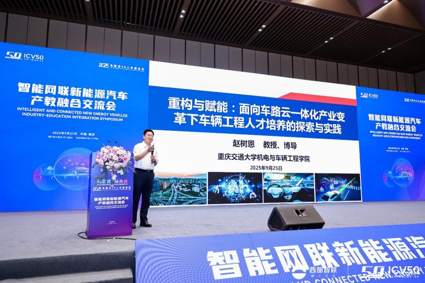 9月27日,赵树恩教授在“智能网联新能源汽车产教融合”分论坛上,作为全国车路云一体化行业产教融合共同体理事长参加了“智能网联新能源汽车人才发展委员会”揭牌仪式。人才发展委员会的成立,不仅精准填补了智能网联新能源汽车行业人才培养机制化合作的空白,更标志着领域内产教融合从短期项目合作,向系统的长期常态化运作深度转型,为行业人才精准供给、高质量输送筑牢了制度根基。